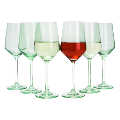 Green Colored Wine Glass Set, 12oz Glasses Set of 6 - Wedding Mint Green, Gift, Baby Shower Gender Reveal Decor Baby Unique Italian Style Tall Stemmed for White & Red Wine Elegant Glassware