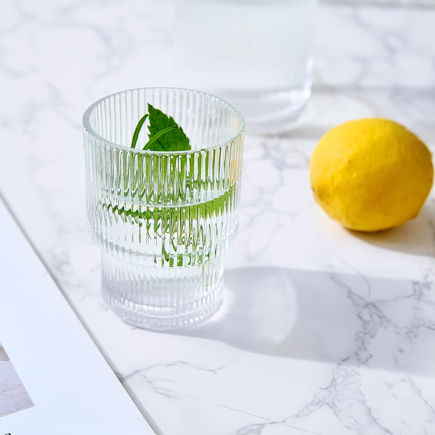 Crystal Elegant Ribbed Night Glass Pitcher
