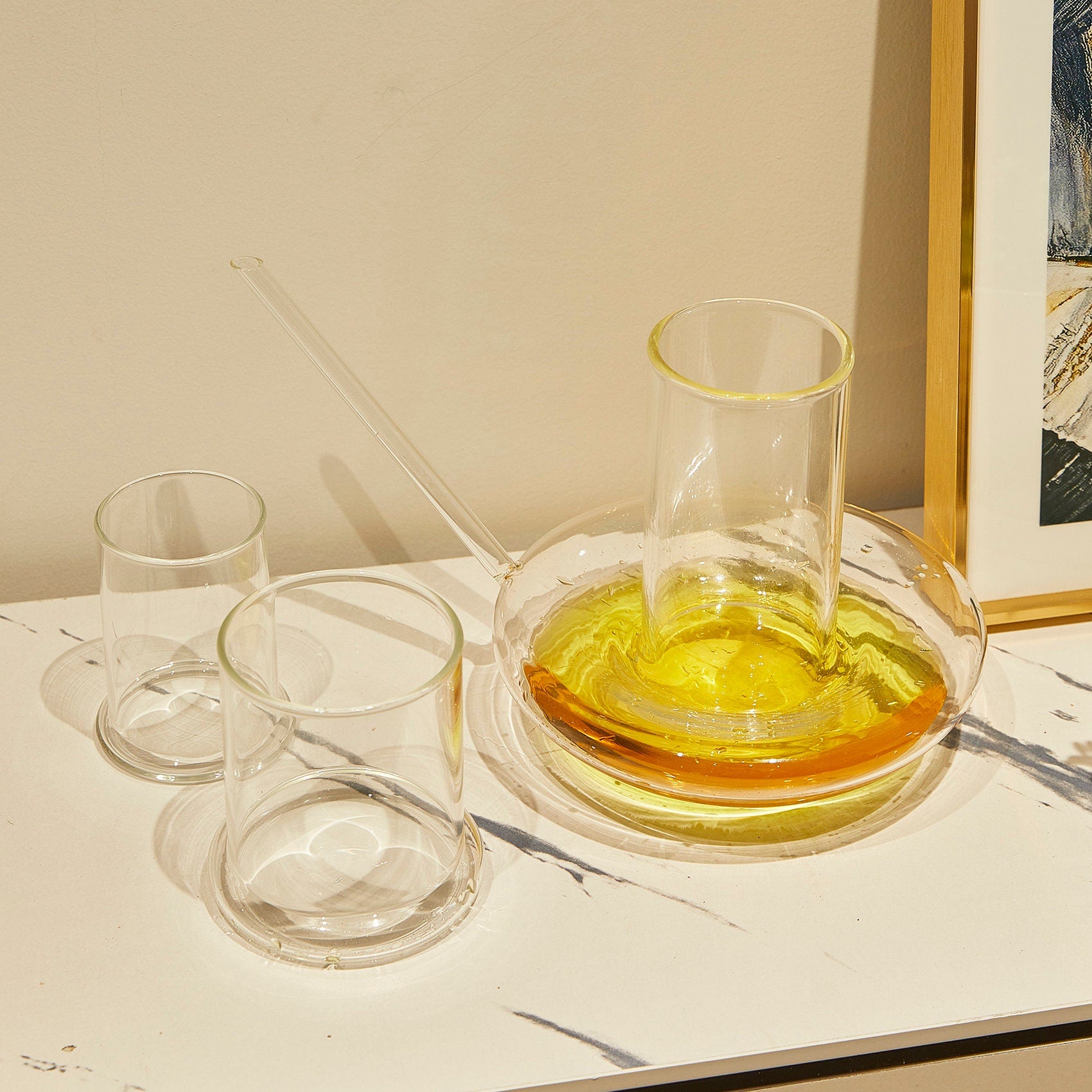 This beautifully handcrafted pitcher and glass cup is the ideal accessory for enjoying water, juice, mixed drinks or any of your favorite spirits.